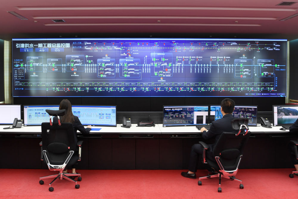 這是2021年9月6日在甘肅省引洮工程水資源利用中心調(diào)度中心拍攝的引洮供水一期工程調(diào)度現(xiàn)場(chǎng)。新華社記者范培珅攝