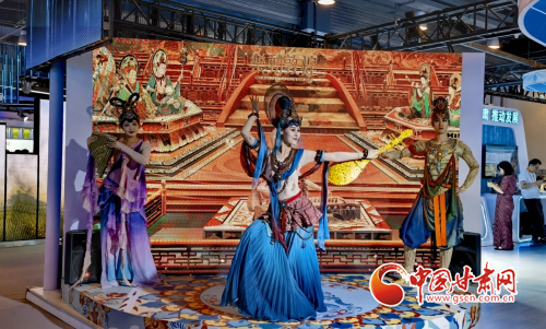甘肅境內(nèi)各類文化燦若星河,世界文化遺產(chǎn)數(shù)量全國第二,文化資源豐富度全國第五。在2024年服貿(mào)會甘肅館內(nèi),文化板塊中的敦煌文化尤為亮眼。通過文化會展產(chǎn)業(yè)、文化演藝產(chǎn)業(yè)、文化IP產(chǎn)業(yè)、科技成果轉(zhuǎn)化、文化對外交流等5個方面展現(xiàn)敦煌國家文化出口基地培育創(chuàng)建情況。參展企業(yè)通過圖片、實物等形式集中展示甘肅非物質(zhì)文化遺產(chǎn)、文化創(chuàng)意產(chǎn)品等。