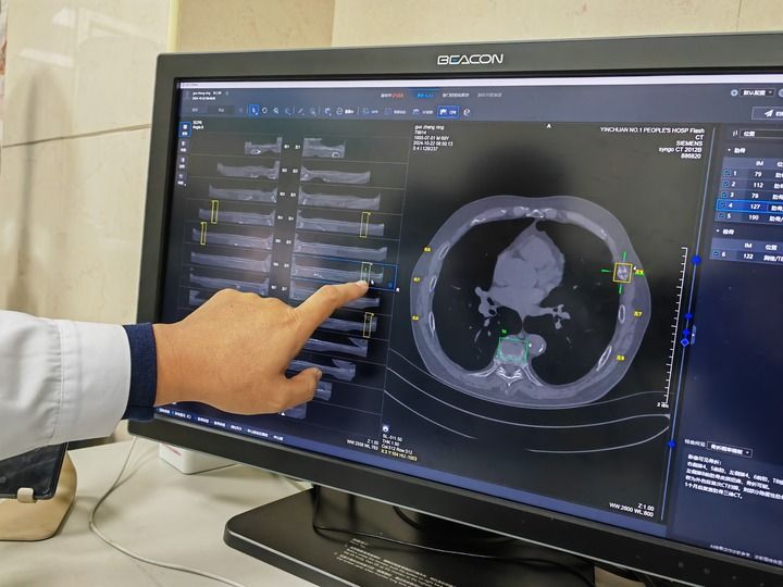 在寧夏回族自治區(qū)銀川市第一人民醫(yī)院,放射科副主任醫(yī)師姜榮興打開電腦上的人工智能輔助診斷系統(tǒng),導(dǎo)入病患CT影像資料后,輕點鼠標(biāo),系統(tǒng)瞬間完成初篩——24根肋骨逐一呈現(xiàn)在屏幕上,骨折和疑似骨折的部位一目了然。醫(yī)生再對初篩結(jié)果作出診斷處理,全程用時不到4分鐘。