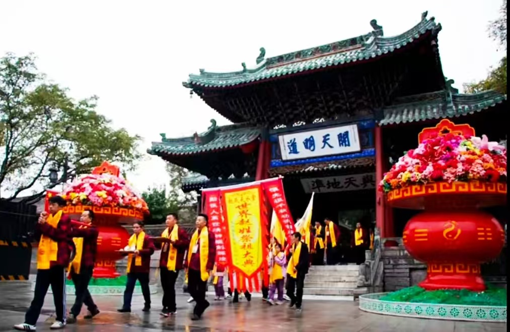上午九點,趙氏天水堂內(nèi)旌旗招展、鼓樂同鳴。趙氏宗親代表隊及舞獅隊、鑼鼓隊、嗩吶隊、腰鼓隊等前往伏羲廟拜謁中華人文始祖伏羲。隨后,祭祖大典在古樸大方、莊嚴肅穆的趙氏天水堂正式拉開帷幕。