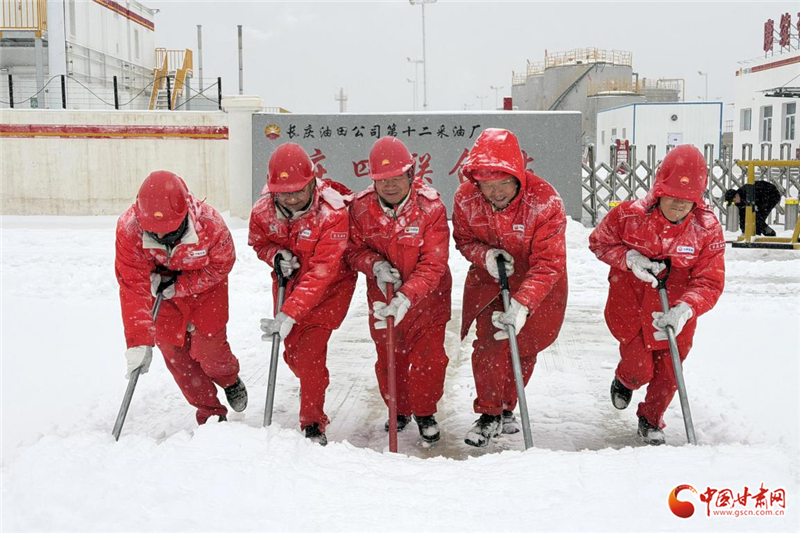 中國(guó)石油長(zhǎng)慶油田采油十二廠干部員工迎風(fēng)踏雪保安全