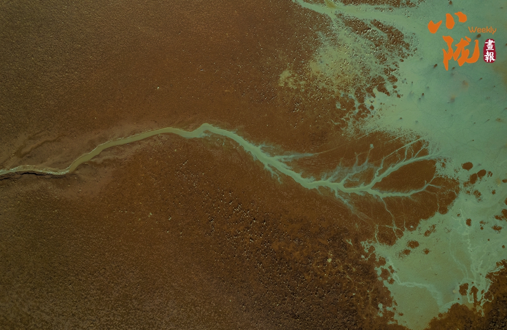 當潮水收起它湛藍的裙擺,灘涂便褪去濕漉漉的偽裝,顯露出大地原始的紋理,恰似一幅細節(jié)豐盈的“山水畫卷”。