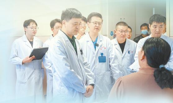 記者趕到住院部13樓普外科一病區(qū)時(shí),查房已經(jīng)開(kāi)始了:主任張輝走在前面,李昕和七八位年輕醫(yī)生跟在身后,魚(yú)貫進(jìn)入一間間病房。“吃飯?jiān)趺礃樱?rdquo;“晚上能睡踏實(shí)嗎?”“能動(dòng)就多動(dòng)動(dòng)。”醫(yī)患間簡(jiǎn)短溫和的對(duì)話(huà),是患者與家屬期待的時(shí)刻。