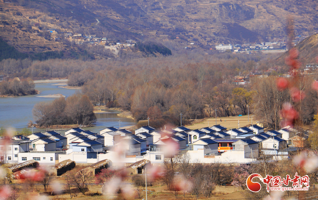盛放的春花與錯(cuò)落有致的民居、蜿蜒的洮水相映成趣