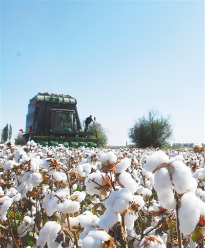 機(jī)械化采棉一景。呂大剛 攝