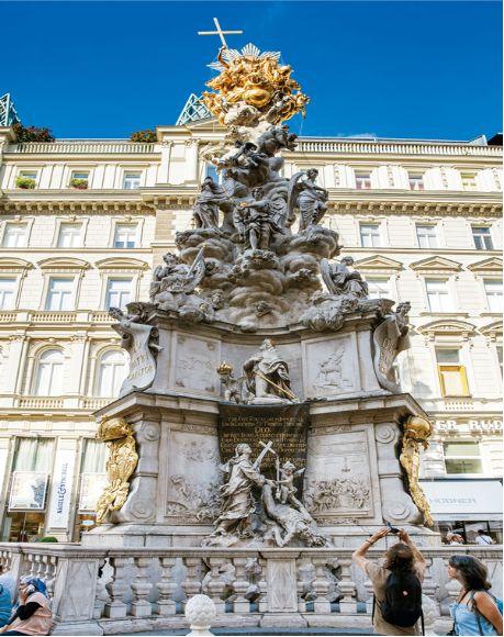 被稱為黑死病的瘟疫使得歐洲2500萬人喪命。圖為位于奧地利首都維也納最繁華的格拉本大街的黑死病紀(jì)念柱。袁亞新/攝