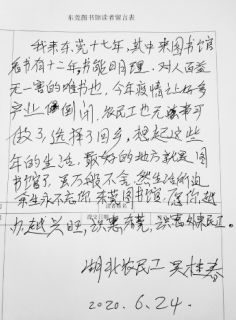 吳桂春:這句標語我現在聽你說,才知道是誰的題詞,怪不得圖書館里的顯著位置都有“知識惠東莞”這句話。當時覺得只要在圖書館辦一張借閱證,我這種外來民工也能進來看書。書籍對每一個人來說都是公平的,不管誰看,都能得到實惠,知識也能惠及外來民工。
