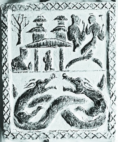 四川漢畫像石拓片,右上方為人首蛇身的伏羲女媧。圖片選自《吾國(guó)與吾名——中國(guó)歷代國(guó)號(hào)與古今名稱研究》