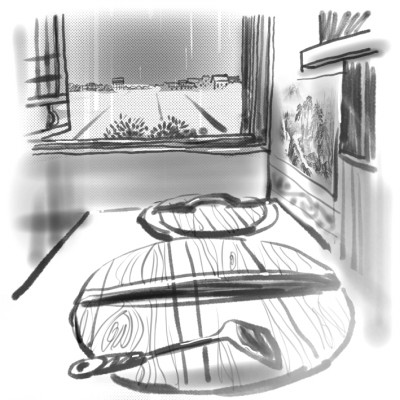 “晚飯馬上好了。”他砰地蓋上鍋蓋。