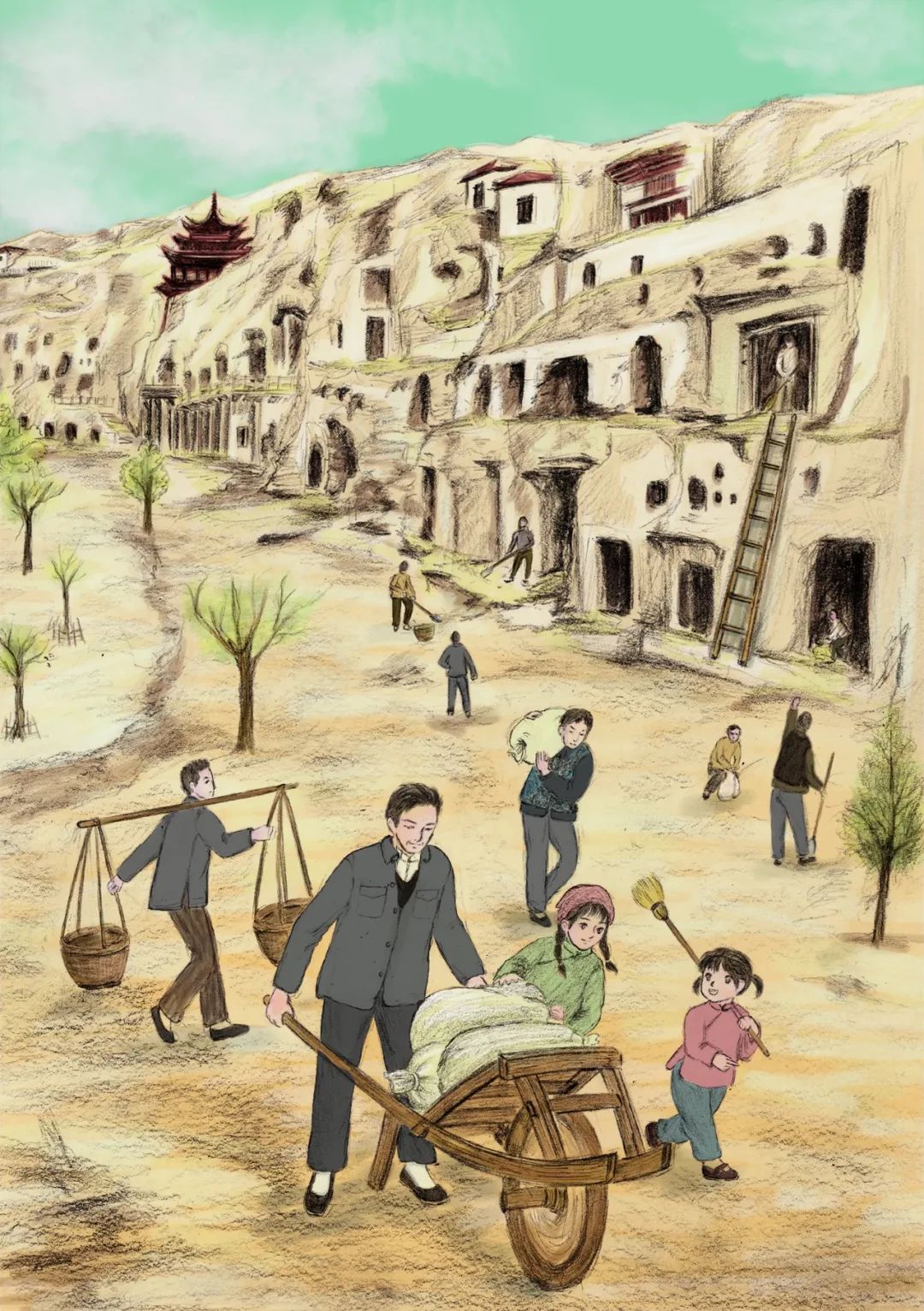 這也是一本有時代縱深感的書,它從欣潔失去媽媽的抗戰(zhàn)時期寫起,一直寫到中國人民解放軍接管敦煌。它寫欣潔一家坐著敞篷卡車,一路顛簸從成都來到敦煌,作品對沿途自然風貌和人情民俗的多彩變化都有生動描寫。它寫欣潔一家在敦煌的小土屋里安家,既有時代地域特色又有家庭的溫馨和暖陽。它寫一個小女孩如何從對莫高窟的一無所知到逐漸認知、理解再到熱愛的成長歷程,充分表現(xiàn)了敦煌人一開始就具有的積極上進的理想和精神。同時作者也力圖通過這樣一個故事告訴我們,一個孩子是怎樣認識并理解敦煌的。
