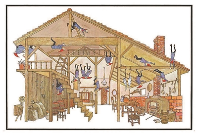 安野光雅在《思考的孩子》中講述說,小時候他曾和弟弟說:“告訴你一個秘密,千萬不要說出去喔。我們家有間地下室,里面有好多金銀財寶、衣服和玩具。入口就在米柜里,只要把米撥開,挖呀挖到最深處,就會看到地下室了。”當(dāng)時弟弟的表情超級認真。“而我說著說著,連自己都覺得真有那么一回事。后來,我問弟弟還記不記得這件往事,他說,那是他心靈最快樂的一段時光。”