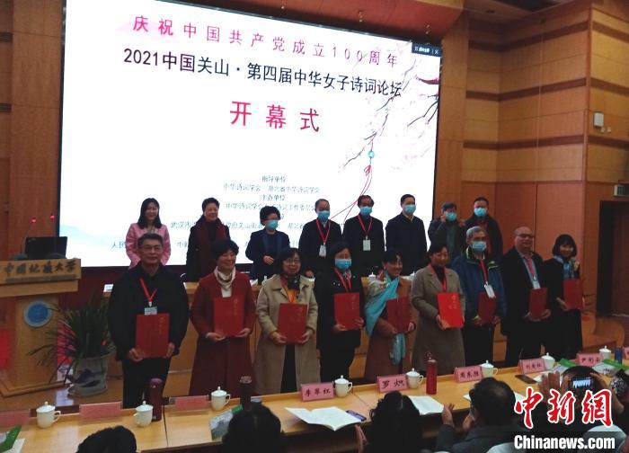 中新網(wǎng)武漢3月21日電 (記者 艾啟平)2021中國(guó)關(guān)山·第四屆中華女子詩(shī)詞論壇21日在中國(guó)地質(zhì)大學(xué)(武漢)開幕,全國(guó)各地嘉賓、詩(shī)詞界人士以及詩(shī)詞愛好者等200余人出席。中國(guó)古典文學(xué)研究專家葉嘉瑩通過視頻為論壇發(fā)來賀詞。