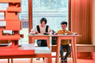 5月8日,一對母子在福建省晉江市東石鎮(zhèn)“母親的房子”圖書館內(nèi)閱讀。今年5月,福建省晉江市東石鎮(zhèn)“母親的房子”圖書館正式對外開放。“母親的房子”是福建省晉江東石籍作家蔡崇達(dá)《皮囊》書里所描述的一座房子。現(xiàn)在,這座房子被他改造成了一座現(xiàn)代風(fēng)格與閩南特色相融合的公益圖書館,成為當(dāng)?shù)毓参幕囊徊糠?。新華社發(fā)