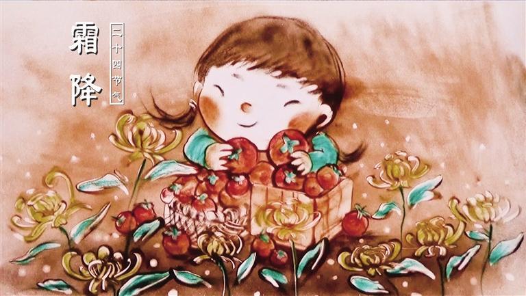 “天氣也如花語(yǔ)一般,有著未約定卻俗成的含義。”宋英杰對(duì)霜降節(jié)氣的解讀十分生動(dòng):“‘秋風(fēng)蕭瑟天氣涼,草木搖落露為霜。’霜降物候,草木黃落,蟄蟲俯,該飄零的飄零,該潛藏的潛藏。但霜色意濃,秋之,反倒是秋季最多彩的時(shí)期。”