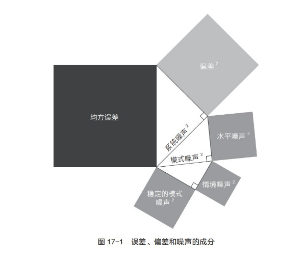 雖然我們很想謹慎一點,盡量避免基于有限的案例做出過度性概括。然而,整合我們研究后發(fā)現(xiàn),穩(wěn)定的模式噪聲實際上比系統(tǒng)噪聲的其他成分都更為重要。由于我們很少在同一研究中全面地探究誤差的各個組成部分,因此需要進行精確的分析才能得出這樣一個暫時性的結論。簡而言之,以下就是我們所知道的和所不知道的。(摘自第17章 噪聲源:偏差是引人注目的圖形,而噪聲是不受我們關注的背景)