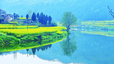 四川省德陽市雙東鎮(zhèn)凱江河畔菜花黃。尹文忠攝