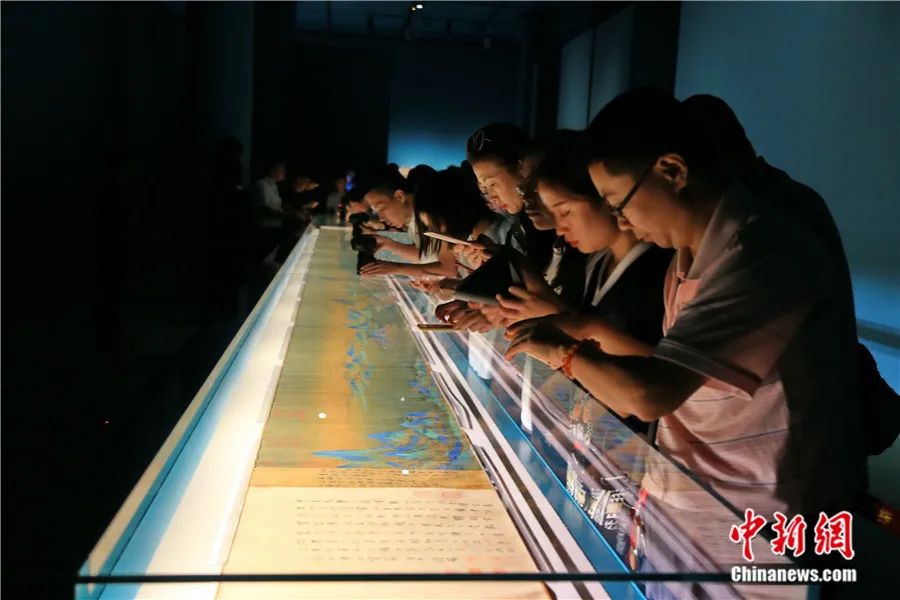 觀眾在北京故宮博物院參觀《千里江山圖》。中新社發(fā) 劉憲國(guó) 攝