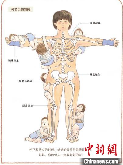 《我的媽媽》內(nèi)文圖,展現(xiàn)了產(chǎn)后媽媽會(huì)發(fā)生的骨骼疼痛 接力出版社供圖