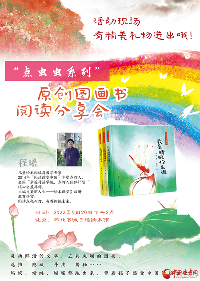 主題活動(dòng)包括聯(lián)合甘肅少年兒童出版社邀請(qǐng)兒童繪本閱讀與教育專家程曦為小讀者分享“點(diǎn)蟲蟲系列”原創(chuàng)圖畫書,西北書城“快樂童年·好書相伴”主題6.1折兒童圖書展,線上微商城“抽盲盒”,“小劇人”兒童沉浸式閱讀,筱筱老師講繪本故事,親子手工制作“小粽子”,與蘭州市圖書館共同開展“慶六一·迎端午”我是朗讀者活動(dòng)。