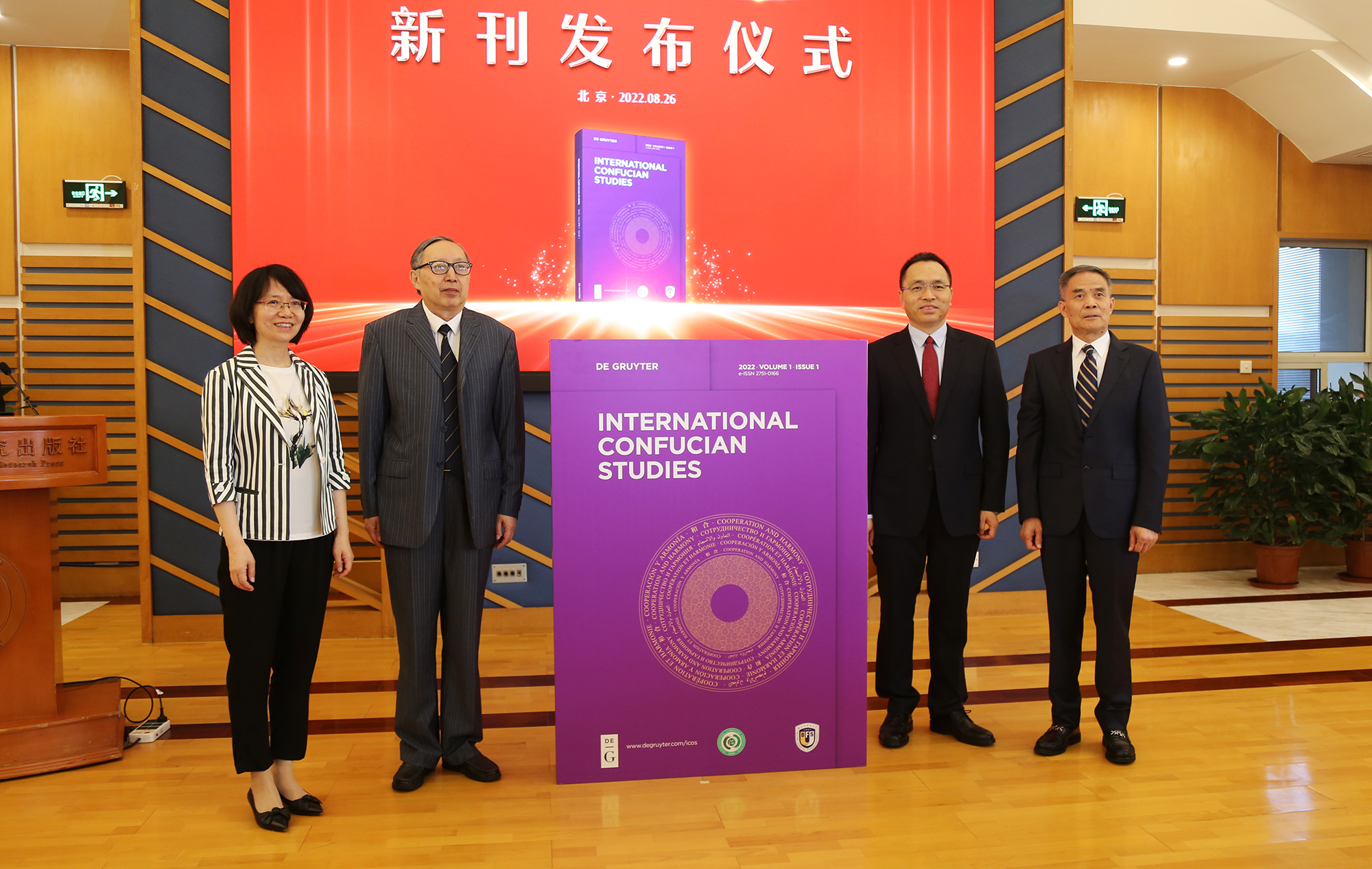 陳睿、陳來(lái)、楊丹、賈德永共同為《國(guó)際儒學(xué)》(英文版)新刊揭幕。(從左至右)
