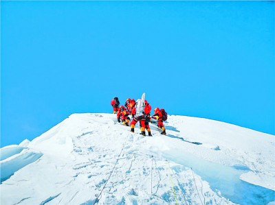 珠峰是地球的驕傲,人類探險精神和探索精神的制高點與交匯處。登頂珠峰,是人體內(nèi)冒險因子的永恒主題,是人類挑戰(zhàn)自身、挑戰(zhàn)極限、創(chuàng)新紀(jì)錄的不朽篇章。一次又一次登頂珠峰的背后,顯示人性中更多的征服欲和榮譽感,凸現(xiàn)難以用言語表達(dá)的從肉體到思想,甚至到生命的付出。