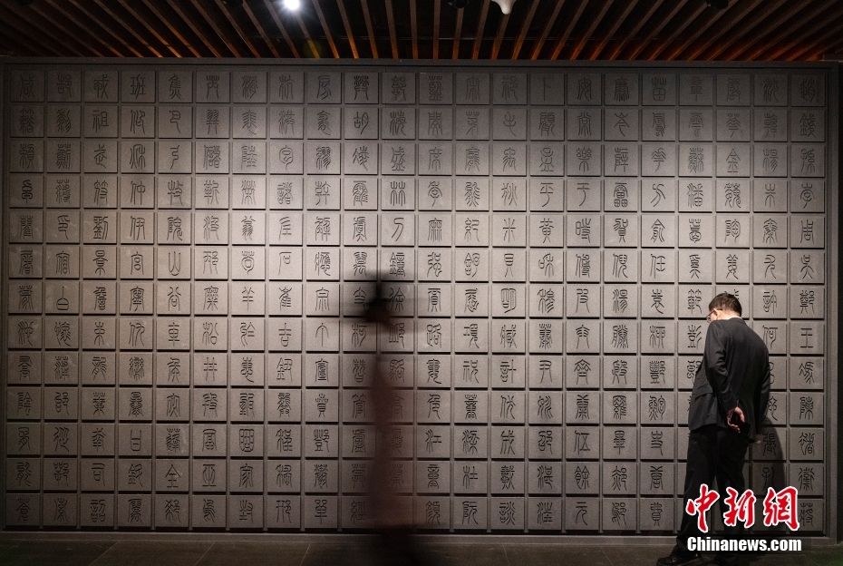 圖為“居延漢簡”展區(qū)內(nèi)的漢簡字形“百家姓”展墻。 中新社記者 侯宇 攝