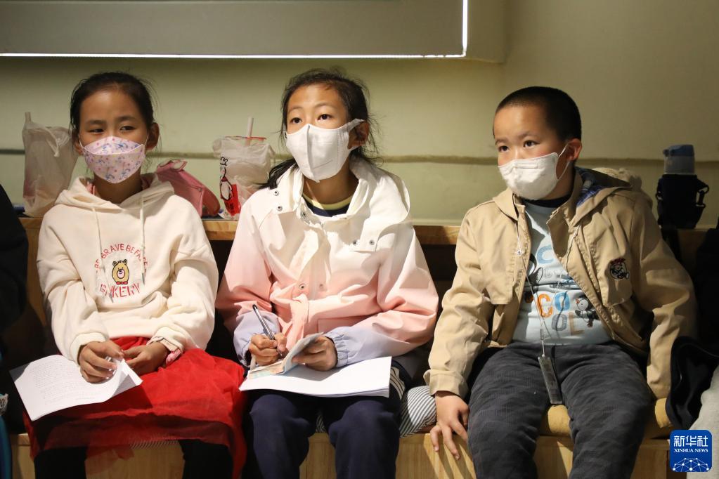 4月1日,在甘肅省蘭州市的讀者出版集團數(shù)字閱讀中心讀者小站,小朋友聆聽老師的閱讀分享。新華社記者 馬希平 攝