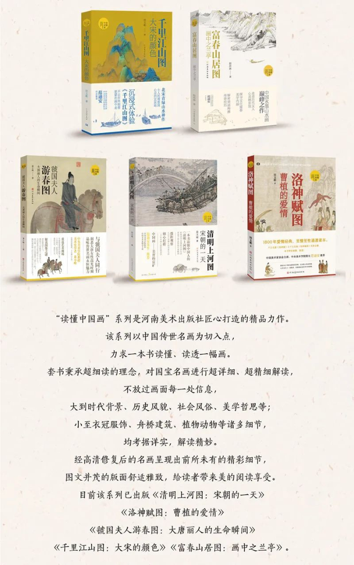 《富春山居圖:畫中之蘭亭》是“讀懂中國畫”系列叢書之一。作者趙洪波以媒體人敏銳的視角,帶領(lǐng)讀者深入富春山水,既“遠(yuǎn)觀其勢”,又“近察其妙”,仔細(xì)品賞畫卷中的每一處山石、林泉、草木、人物,認(rèn)真探尋畫面背后的文化和美學(xué)涵義,筆墨之妙、留白之韻、山水哲學(xué)、君子之樹、沙洲的意象、孤山的意境、火殉的傷痕、彈幕的遺憾……這些問題在本書中都得到了輕松有趣的解答。