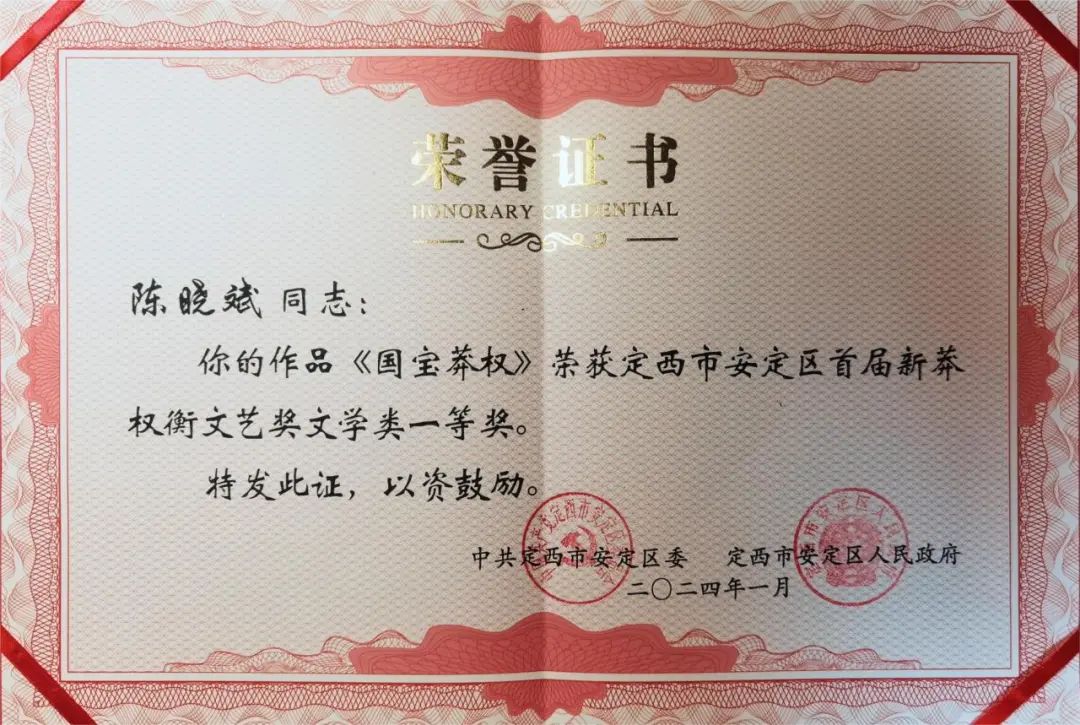1月21日晚,由定西市安定區(qū)委、區(qū)政府主辦的首屆“新莽權(quán)衡文藝獎”頒獎晚會在隴中許鐵堂秦腔劇院隆重舉行。讀者出版社紀(jì)實(shí)文學(xué)作品《國寶莽權(quán)》榮獲文學(xué)類一等獎。