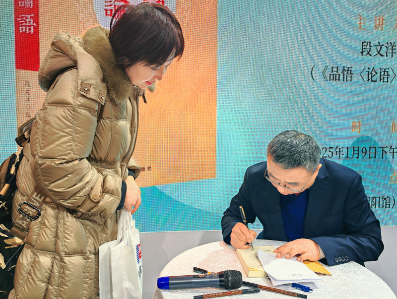 《品悟〈論語(yǔ)〉》一書(shū)作者段文洋在活動(dòng)現(xiàn)場(chǎng)為讀者簽名