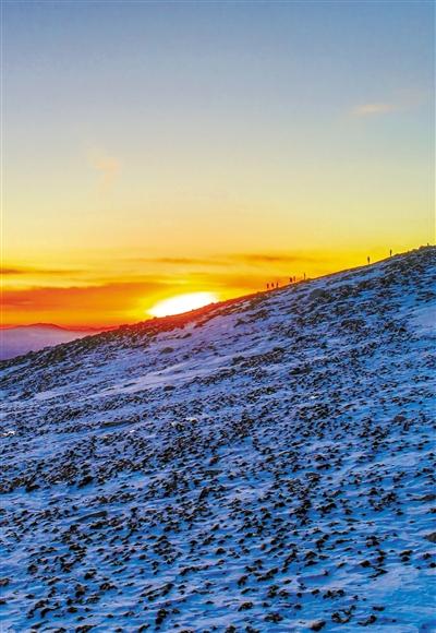 元旦當(dāng)日早上6時(shí)30分,記者乘坐景交車(chē)前往巴爾斯圣山核心景區(qū)觀看日出,在抵達(dá)海拔3900米后徒步上山迎接2020年第一縷陽(yáng)光??邕^(guò)及膝的雪,踏過(guò)堅(jiān)硬的碎石堆,溜過(guò)光滑的冰面,抵達(dá)了海拔4100米最佳觀賞日出點(diǎn),等待著新年第一縷陽(yáng)光刺破蒼穹、越過(guò)遠(yuǎn)處的雪山之巔照耀大地。7時(shí)50分左右,陽(yáng)光沖破云層,遠(yuǎn)處的雪山像是被鑲了一道金邊,此時(shí)只覺(jué)心靈與大山融為了一體,只有靜靜地等待。不知不覺(jué)中,陽(yáng)光逐漸刺眼起來(lái),這才意識(shí)到2020年第一抹陽(yáng)光,承載著令人希冀的美好愿望已來(lái)到我們身旁。 蘭州晨報(bào)/掌上蘭州記者 黃芃