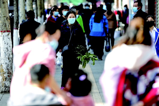 清晨,當陽光灑向大地,南山市場早已門庭若市,鮮嫩的蔬菜水果、帶著春天氣息的野菜、剛出鍋的包子油條……所有攤位上都擺放得滿滿當當,攤主的叫賣聲此起彼伏,絡(luò)繹不絕的市民戴著口罩前來買菜,但防疫工作卻沒有絲毫松懈,在菜場的出入口,有專人實時監(jiān)測入場人員體溫,并要求所有人戴好口罩。超市里,各類商品琳瑯滿目,供應(yīng)充足,測完體溫、掃碼進入的市民戴著口罩各自挑選所需商品,購物秩序井然。