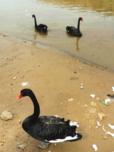 “黑天鵝還是第一次看到,3只都很漂亮,吸引了好多市民觀看。”3月25日下午,81歲的退休職工張體成向本報新聞熱線4286666反映,這3只黑天鵝在西固的黃河邊安“家”已有好長時間了,每天都有愛護動物的市民前來給它們喂食。不管這些是野生還是家養(yǎng)黑天鵝,希望有關(guān)部門保護起來,以免因喂食發(fā)生意外。