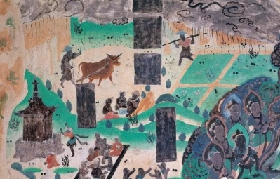 在現(xiàn)存的敦煌壁畫中,則將歷史上清明節(jié)的活動盛況形象地展現(xiàn)在了現(xiàn)代人的面前。早在秦漢年間,二十四節(jié)氣系統(tǒng)就已經(jīng)形成,距今已有兩千多年的歷史。西漢劉安所著《淮南子·天文訓(xùn)》中寫到“春分后十五日,斗指乙,則清明風(fēng)至”;宋代陳元靚在《歲時廣記》中進(jìn)一步解釋了“清明”一詞:“清明者,謂物生清凈明潔”;到了唐代,寒食節(jié)就與清明節(jié)并在一起了,唐玄宗于開元二十年(公元732年)詔令天下“寒食上墓”,并列為當(dāng)時“五禮”之一?!杜f唐書》記載:“寒食上墓,禮往無文,近代相沿,寖以成俗,士庶之家,宜許上墓,編為五禮,永為常式”;莫高窟清明踏青圖敦煌文獻(xiàn)《寒食篇》記載:“花場共斗汝南雞,春游遍在東郊道。千金寶帳綴流蘇,簸瓊還坐錦筵鋪。莫愁光景重窗暗,自有金瓶照乘珠。心移向者游遨處,乘舟欲騁凌波步。池中靈水白鵰飛,樹下拋球彩鶯去……”依據(jù)詩文推測,寒食節(jié)除了打馬球,還有蕩秋千、春游、騎馬、斗雞、拋彩球等一系列娛樂活動,處處都是鶯歌燕舞、欣欣向榮的節(jié)日氣氛。