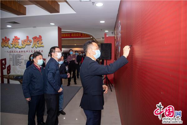 2020年4月17日上午,由中共重慶市九龍坡區(qū)委宣傳部、重慶市九龍坡區(qū)文化和旅游發(fā)展委員會(huì)、重慶市九龍坡區(qū)衛(wèi)生健康委員會(huì)、重慶市九龍坡區(qū)地方志編撰中心聯(lián)合主辦,重慶巴人博物館、重慶市九龍坡區(qū)非物質(zhì)文化遺產(chǎn)保護(hù)中心承辦的“戰(zhàn)疫必勝——九龍坡區(qū)抗擊新冠肺炎疫情專題展”在重慶巴人博物館正式開展,市文化和旅游發(fā)展委員會(huì)副主任幸軍、九龍坡區(qū)委常委、宣傳部部長顏朝華、九龍坡區(qū)政府副區(qū)長趙文明、市文化和旅游發(fā)展委員會(huì)非物質(zhì)文化遺產(chǎn)處處長嚴(yán)小紅、文物保護(hù)與考古處處長熊子華、博物館與社會(huì)文物處處長王發(fā)榮出席開展儀式。