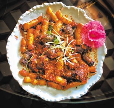 一個(gè)小時(shí)的不停翻炒,這道菜終于可以出鍋了。色澤紅亮誘人、飄散著濃濃香氣的爆炒草雞,怎能不受食客的青睞?
