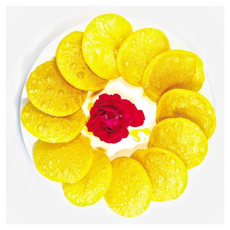 折橋灣的面食中,燙面油香的地位自比尋常,往往在冷熱拼盤交錯中,它已經(jīng)被端上桌,因為它是折橋灣人家中最具象征意義的一種食物。油香炸得好不好,就可以衡量出這家農(nóng)家樂廚師的技藝。