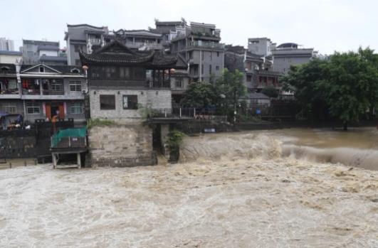 受持續(xù)強降雨影響,4A級景區(qū)乾州古城積水嚴重