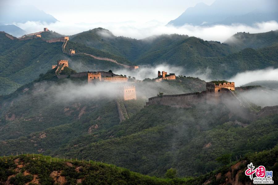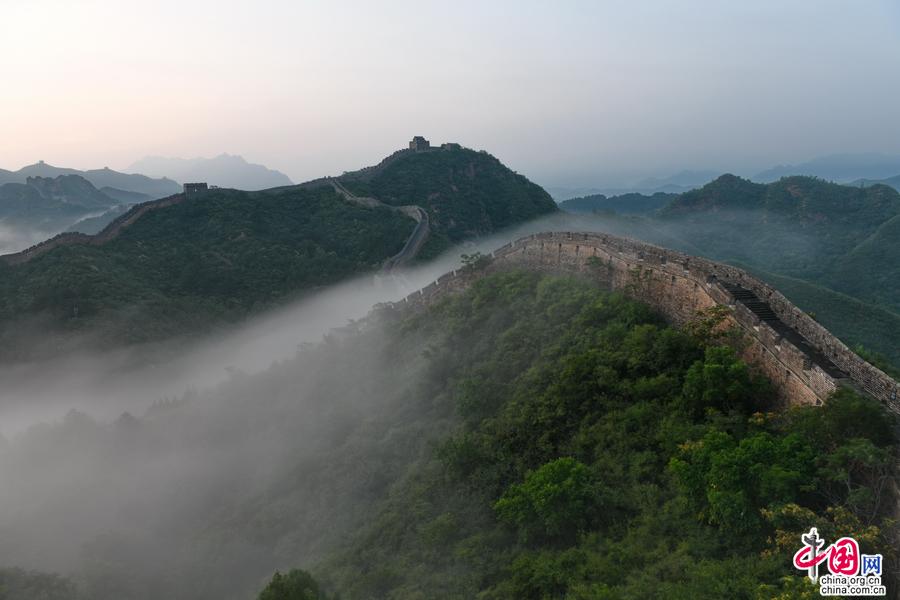 進(jìn)入夏季,金山嶺長城出現(xiàn)云霧天氣多達(dá)二十多次,美輪美奐,令人神往。