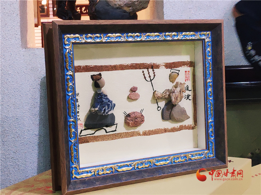 最近,周文露正在創(chuàng)作客戶定制的金陵十二釵圖,這幅風(fēng)雨雕除了人物面部經(jīng)過(guò)人為描繪加工,其他部位以及山水意境等都是戈壁沙石所做。很大程度上,這幅作品就是巧妙地將戈壁沙石創(chuàng)意堆砌達(dá)到畫面效果。