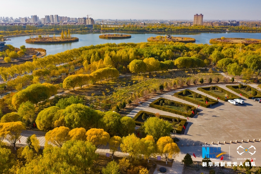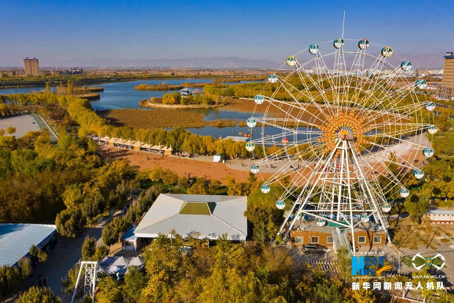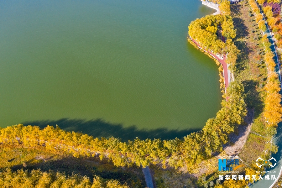 深秋時節(jié),國家4A級景區(qū)甘肅省張掖潤泉湖公園秋水依依,草木金黃,呈現(xiàn)出一幅斑斕畫卷。新華網發(fā)(成林 攝)