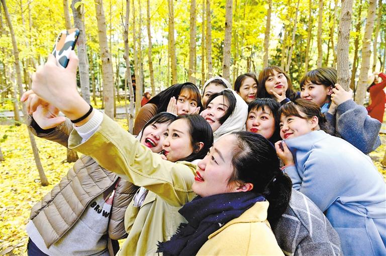 近日,蘭州植物園的銀杏樹金黃一片,吸引眾多市民前去游玩拍照。秋高氣爽,藍(lán)天白云下,蘭州植物園內(nèi)銀杏樹進(jìn)入最佳觀賞期,猶如披上了“黃金甲”,讓魅力無窮的植物園又添新景,金黃色的銀杏樹在陽光的照射下令人陶醉,成為深秋一道迷人的風(fēng)景。
