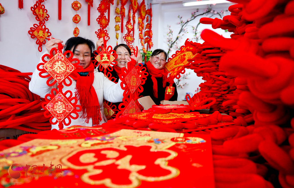 1月6日,甘肅民樂生態(tài)工業(yè)園區(qū)的巾幗扶貧車間內(nèi),編織女工正在緊張忙碌地抓緊編織中國結(jié),供應(yīng)節(jié)日市場,喜迎新春。