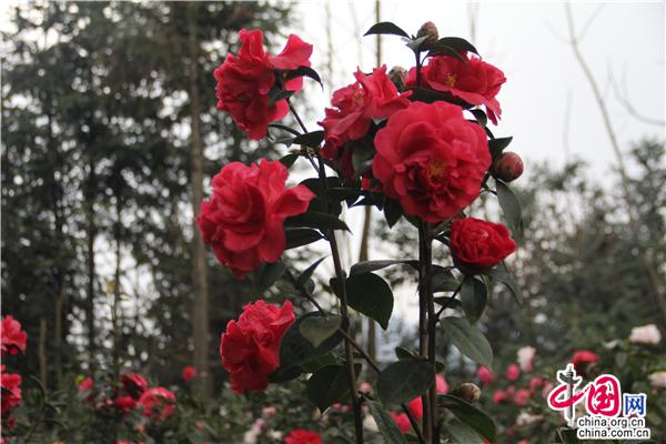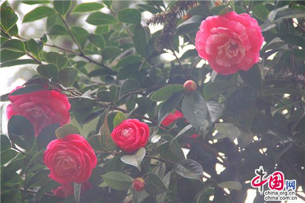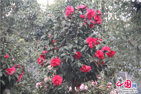 一輪艷陽照四方,一席春風(fēng)綠千山。山茶花是中國傳統(tǒng)名花,也是世界名花之一。2月21日,朋友相約,從縣城出發(fā),約8公里就進(jìn)入九龍生態(tài)園,姿態(tài)各異的山茶花已進(jìn)入盛花期,樹姿虬勁優(yōu)美,綠葉四季不凋,一朵一朵的茶花大如牡丹,燦如云霞,風(fēng)姿綽約,耀眼生輝!植株形姿優(yōu)美,葉濃綠而光澤,花形艷麗繽紛,美艷了。有的鮮紅如火、有的嬌羞染粉、有的晶瑩潔白……滿園茶花勝景。不經(jīng)意間清風(fēng)吹過,暗香徐來,朵朵花兒隨風(fēng)舞。陽光穿透葉子的縫隙,落在花間小道上,花香彌漫整個鼻腔,放低自己,品味花香,眼里有花、心里有花,人生就會像花一樣美麗。
