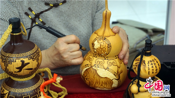 葫蘆烙畫又稱燙畫葫蘆、火筆畫葫蘆,是國家非物質(zhì)文化遺產(chǎn)。做葫蘆烙畫得用烙鐵當(dāng)筆,燒熱后在葫蘆表面熨出烙痕作畫。烙畫和葫蘆融為一體,能長久保存,可以作為工藝品收藏。其中,非遺傳承人陶瑞珍的葫蘆烙畫形成了獨(dú)特的藝術(shù)風(fēng)格。