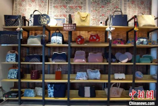 圖為祁輝純手工刺繡制作的時(shí)尚包展示?!堟?nbsp;攝