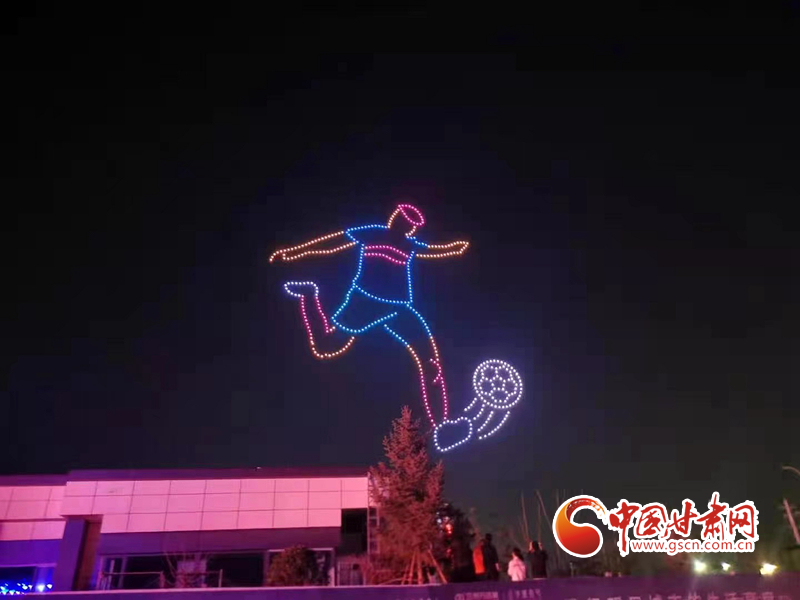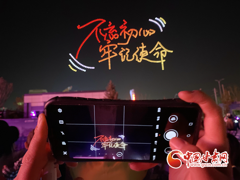 活動現(xiàn)場,千架無人機編隊以天空為幕,以“熒光”為筆,在金城上空分別繪就“慶祝中國共產(chǎn)黨成立100周年”“蘭州鐵橋”“奧體中心”等數(shù)幅壯美畫面,集中反映近年來蘭州市在經(jīng)濟(jì)社會領(lǐng)域取得的成就。