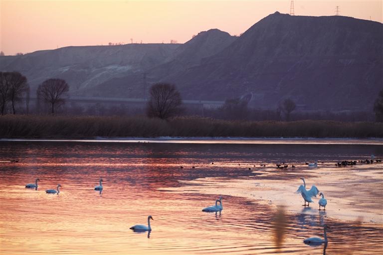 原標(biāo)題:詩意大河 天鵝起舞 蘭州黃河沿岸成候鳥“天堂”
