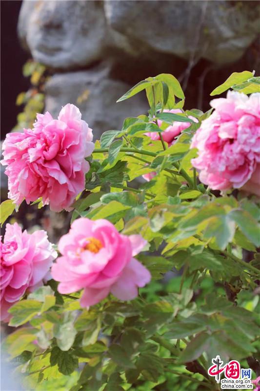 “國色鮮明舒嫩臉,仙冠重疊剪紅云”。北宋范純?nèi)室?ldquo;仙冠”吐露牡丹之絕艷,即是春日的機(jī)緣促成的繁華與熱烈。重瓣牡丹更是醉馨自然,光灑在其上如透亮的粉晶般耀眼,翠綠有心添一抹“怒”放的生機(jī),無論深紅淺紅俱是春日的盛情。