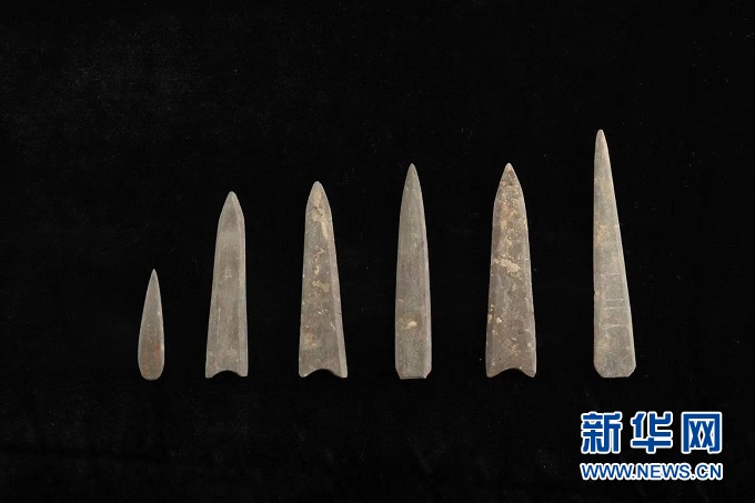 這是甘肅慶陽南佐遺址出土的涂有朱砂的石鏃。(圖片由南佐遺址聯(lián)合考古隊提供)